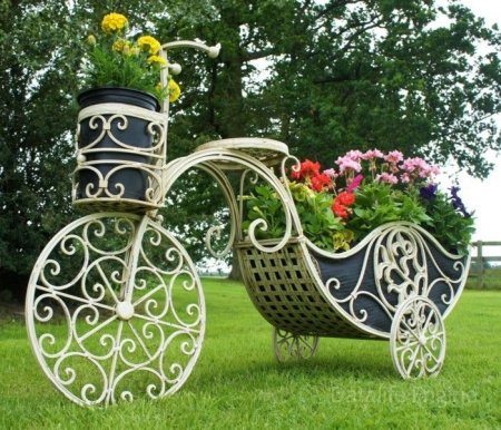 Цветочница велосипед. Кованая цветочница в виде велосипеда. Окрашен в белый цвет. Сзади сделан большой отсек для цветов. Поделиться
