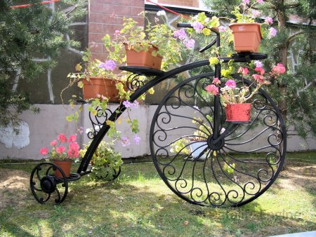 Кованая цветочница в виде велосипеда на 6 цветков.