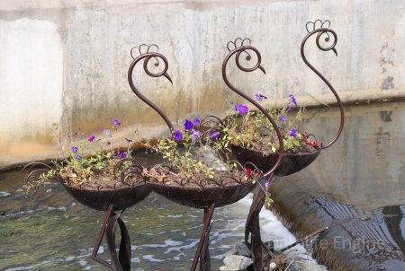 Кованые цветочницы в виде цапель, заметно украсят Ваш двор.