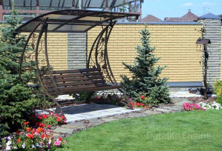 Кованые качели. Кованые качели в Ваш сад. Крыша накрыта монолитным поликарбонатом. Стилизация качели под вьющийся виноград. Поделиться
