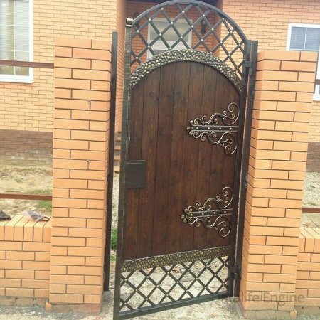 Кованая калитка. Кованая калитка закрытого типа. Материал которым зашита калитка: древесина. Поделиться