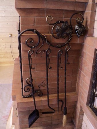 Кованый настенный каминный набор на 4 предмета.