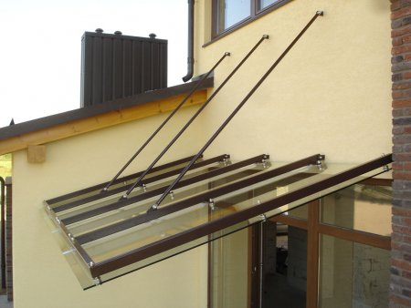 Козырек на подвесах Стеклянный козырек на подвесах.Стекло хорошо сопротивляется снеговым и ветровым нагрузкам. Поделиться