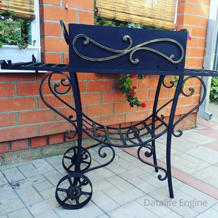 Легко транспортируемый мангал для жарки мяса на отдыхе. С помощью колес, мангал без труда может быть перемещен. Мангал оборудован боковыми подставками для шампуром и продуктов для приготовления пищи. Красивая ковка придаст Вашему участку неповторимый стиль. Высокое качество материала гарантирует долгий срок эксплуатации мангала.