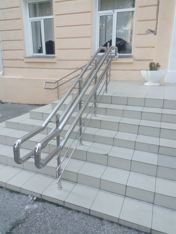 Перила из нержавейки Поручень из нержавеющей стали с тремя ригелями. Место применения: Крыльцо фирм, магазинов и других мест. Поделиться