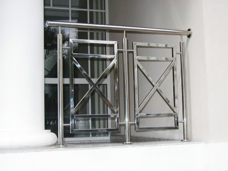 Перила из нержавейки Нержавеющее ограждение крепится в пол, а так же с помощью бокового крепления к стене. Дизайн из комбинации круглых и квадратных форм. Поделиться