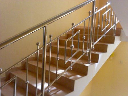 Перила из нержавеющей стали выполнены с добавлением шаров.