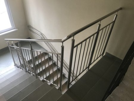 Классическое, нержавеющее ограждение, с крепежными вертикальными стойками и тонкими, но надежными решетчатыми прутьями. Крепится в пол, а так же с помощью бокового крепления к стене или в лестничные марши. Служит для ограждения лестницы внутри помещения.