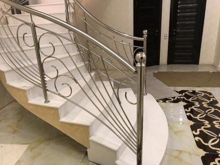 Перила из нержавейки Красиво исполненные перила из нержавейки, подчеркивают все достоинства лестницы, имеют уникальный эксклюзивный дизайн. Исполнены с добавлением шаров и из круглых плавнообразных поручней, повторяющих форму лестницы. Поделиться