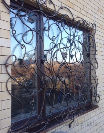 Кованая решетка на окно. Решетка сделана в виде плетущегося винограда.