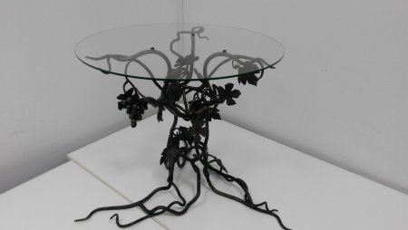 Кованый столик. Кованый журнальный столик с стеклянной столешницей. Ножка кованого столика выполнена в виде вьющегося винограда с декоративной обжимкой металла под "виноградную лозу" Поделиться
