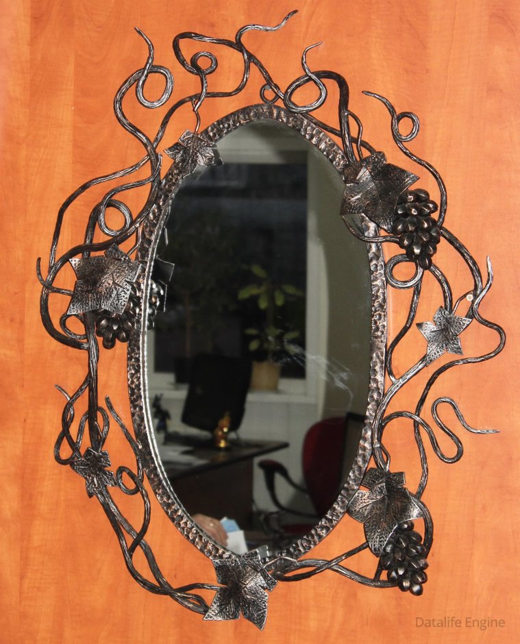 Круглое кованое зеркало Кованая рама в форме виноградной лозы, с виноградными гроздьями ручной работы. Изготовлена под зеркало овальной формы. Поделиться
